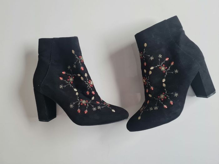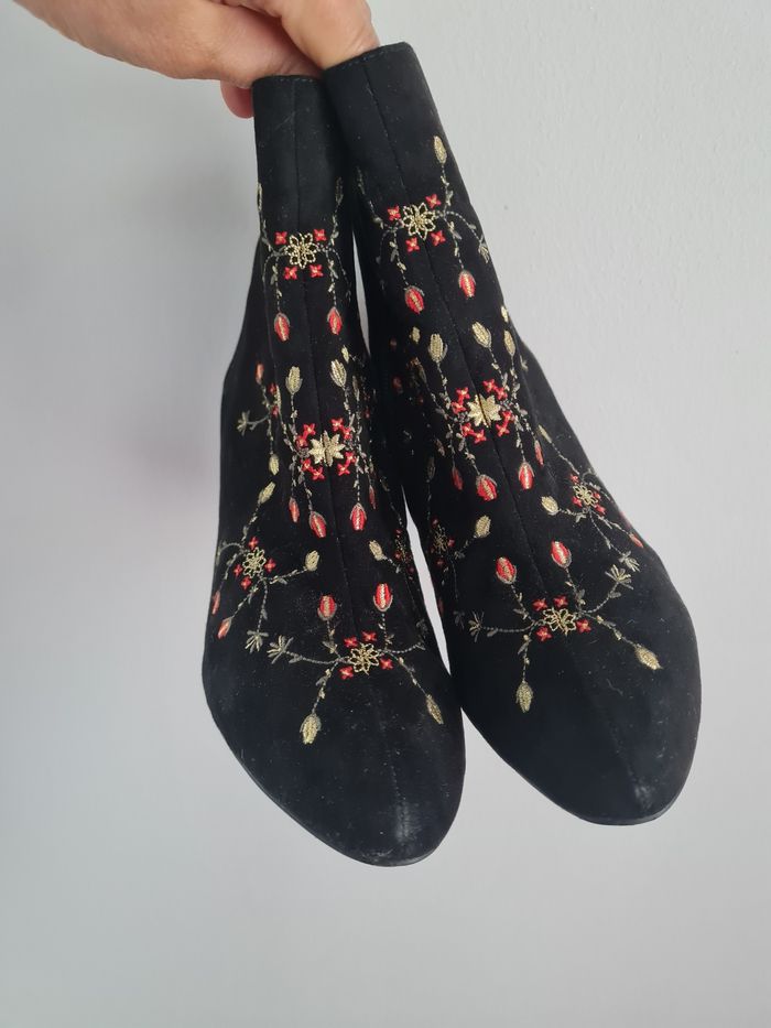 Superbes bottines noires daim brodées - photo numéro 1