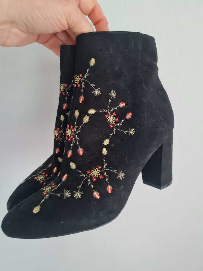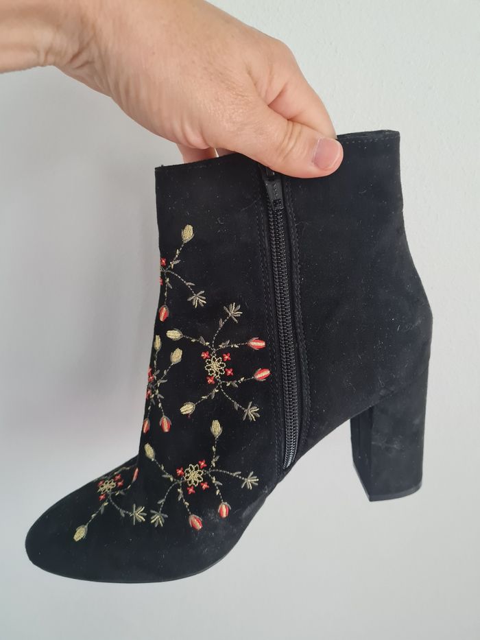 Superbes bottines noires daim brodées - photo numéro 2
