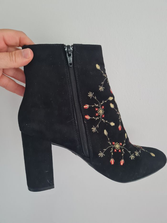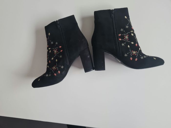 Superbes bottines noires daim brodées - photo numéro 3