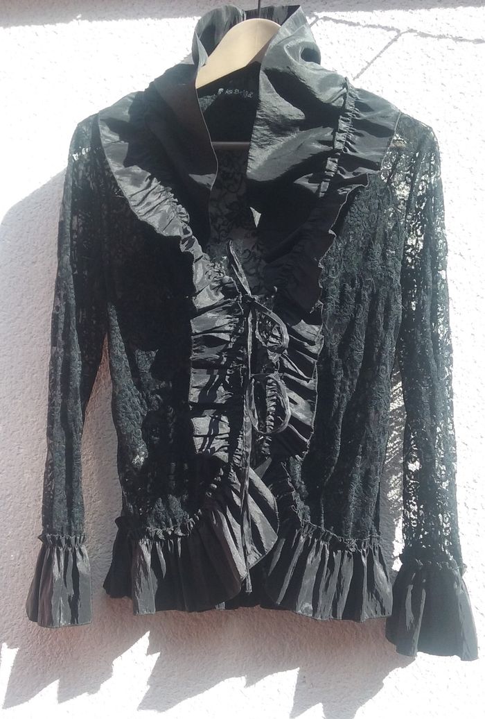 chemisier noir dentelle et volants Sisi Bella - photo numéro 1