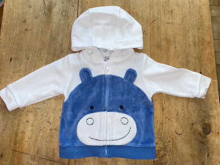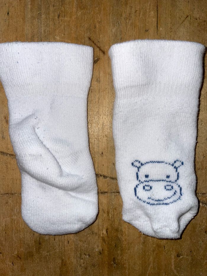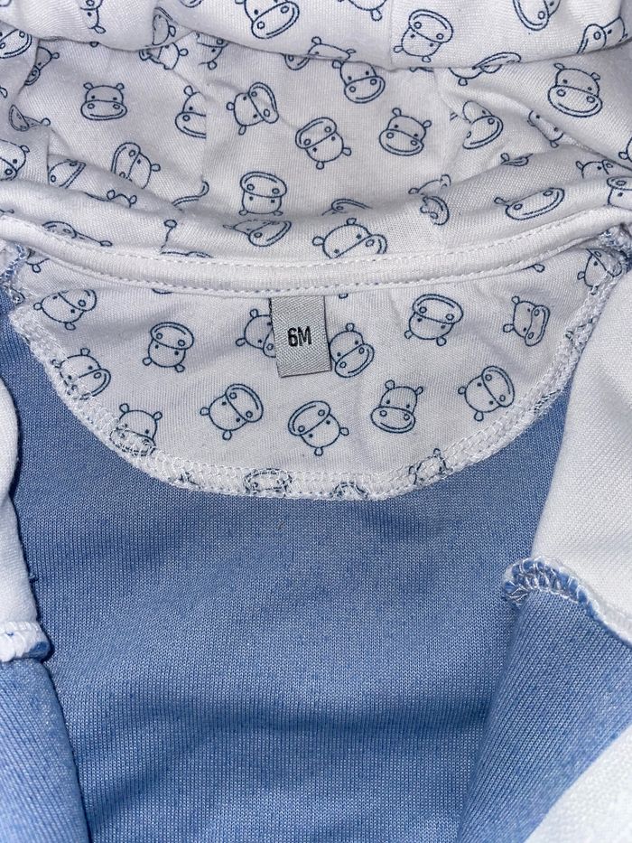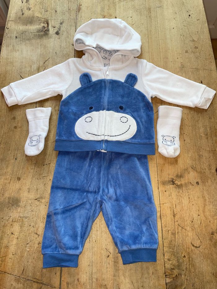 Ensemble type jogging + chaussettes Bleu et blanc motif hippopotame Taille 6 mois Porté 2 fois