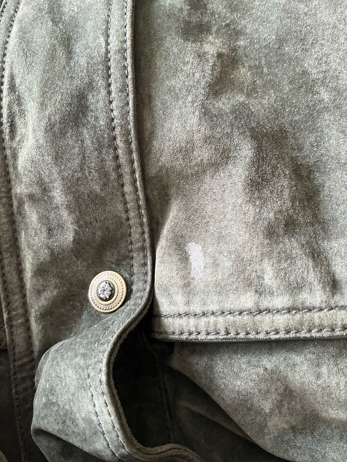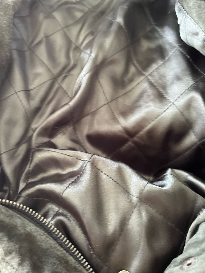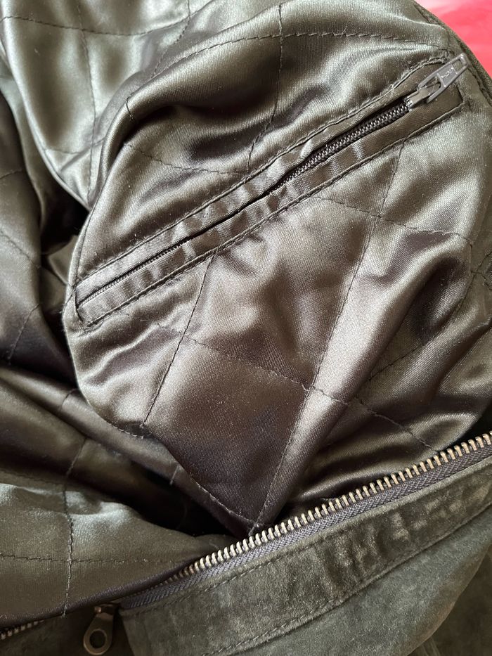 Manteau femme en 100% croûte de cuir porc en un magnifique vert avec doublure 100% polyester en très bon état très peu porté mais avec une petite tache le cuir est un peu râpé mais à peine visible à voir sur la dernière photo je pense qu’avec une bombe imperméabilisante verte on ne verrait plus rien malheureusement je n’en n’est pas très classe acheté dans un magasin de cuir