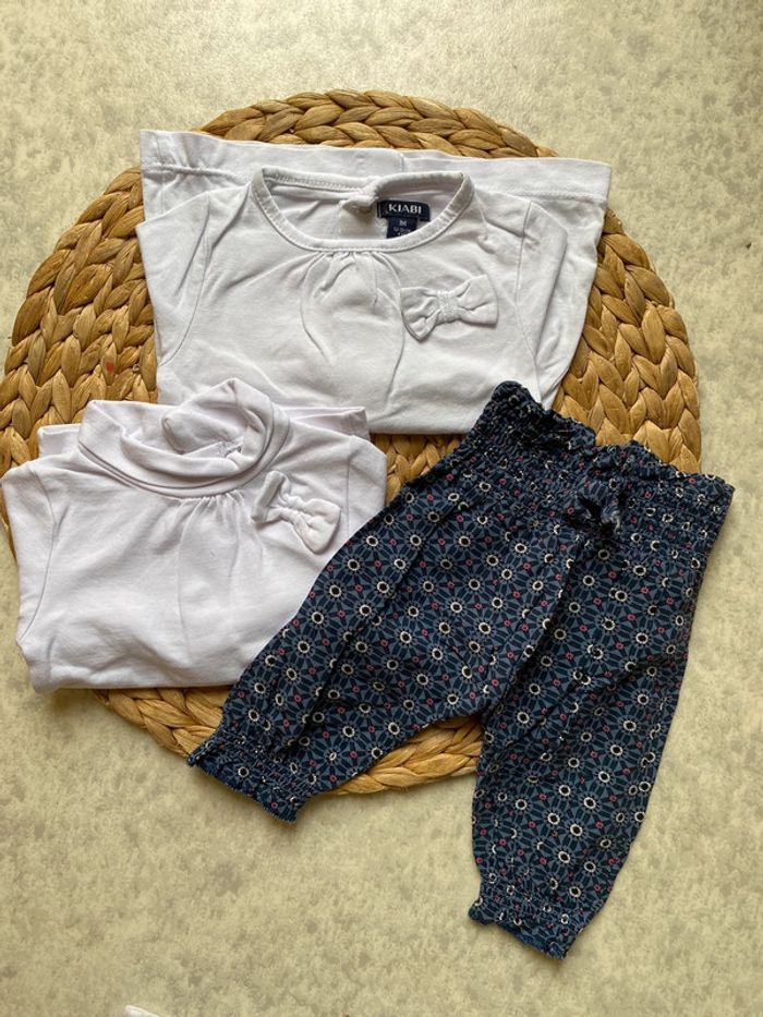 ▪️Lot fille de la marque Kiabi taille 1 mois en parfait état ▪️T-shirt blanc, col roulé blanc et pantalon #lot #lot1mois #kiabi #kiabi1mois #1mois