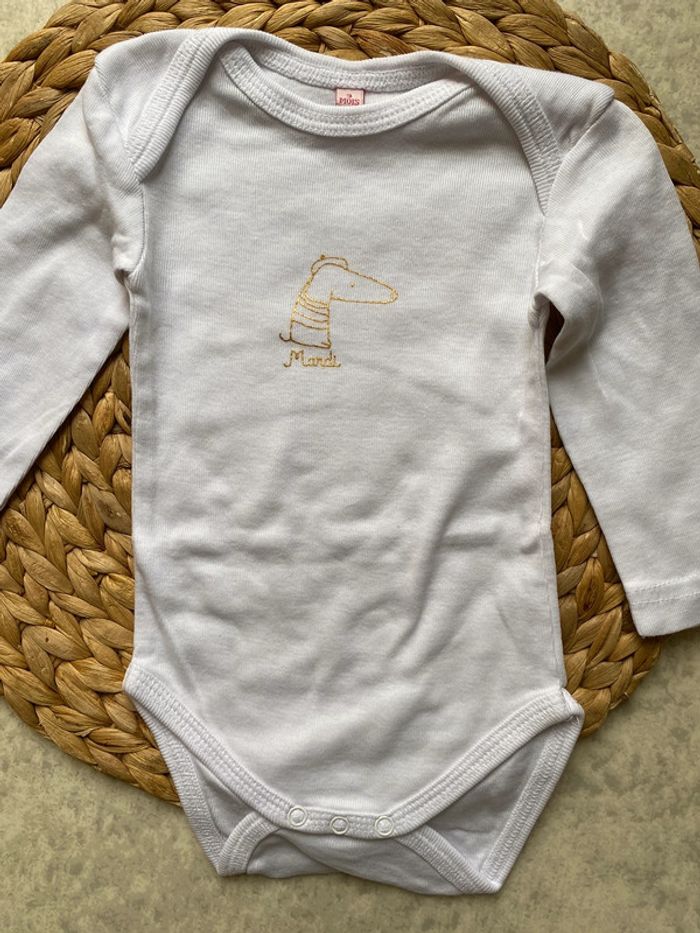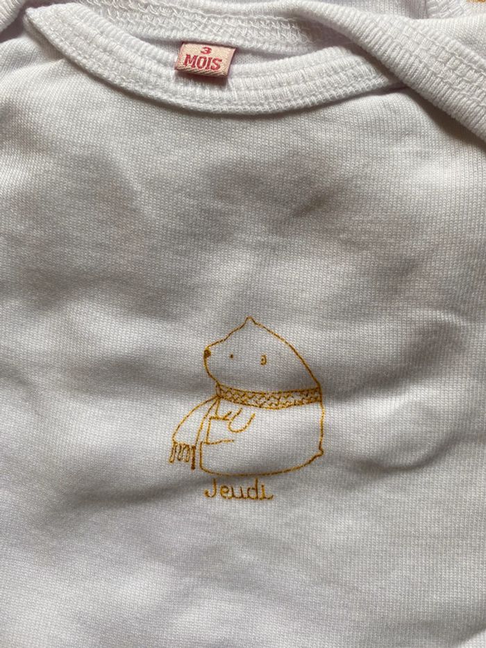 ▪️Lot de 5 bodies manches longues ▪️Lavé mais jamais porté ▪️Jours de la semaine devant, taille 3 mois #bodies #bodiesfille #3mois #jourdelasemaine #bodies3mois #lot3mois