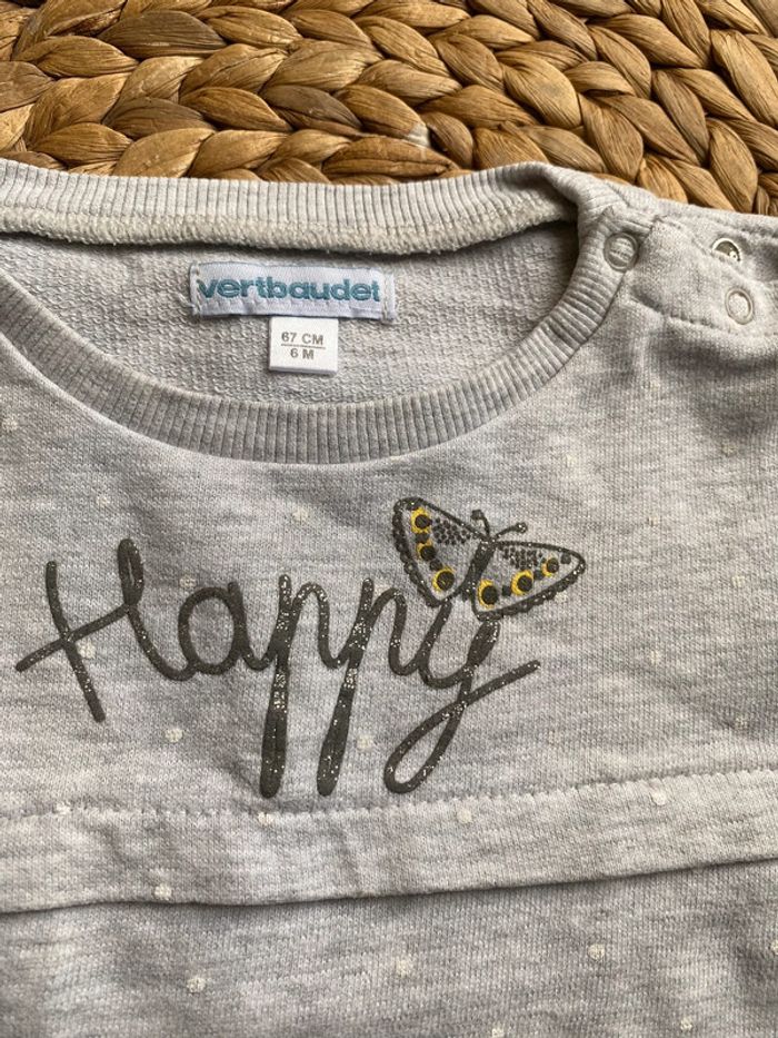 ▪️Sweat gris à pois blanc Happy de la marque Vertbaudet ▪️Taille 6 mois ▪️Très bon état #vertbaudet #6mois #sweat6mois #vertbaudet6mois