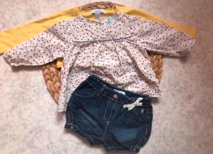 ▪️Ensemble fille 3 pièces de la marque Obaibi, un boléro un top et un short en jean ▪️Taille 6 mois ▪️Parfait état comme neuf #obaibi #ensemble #6mois #obaibi6mois #ensemble6mois