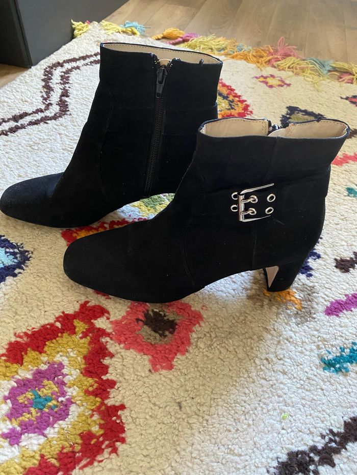 Bottines noires simili daim en très bon état. Portées une fois.