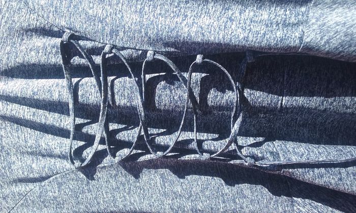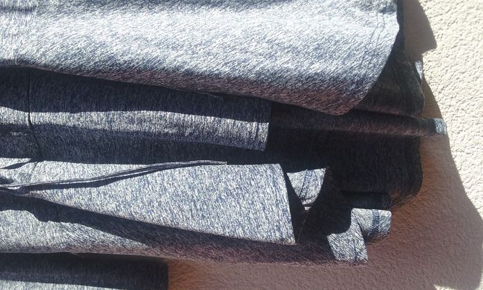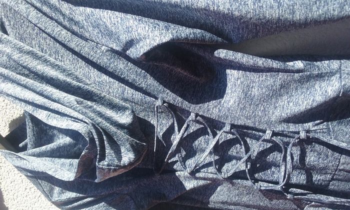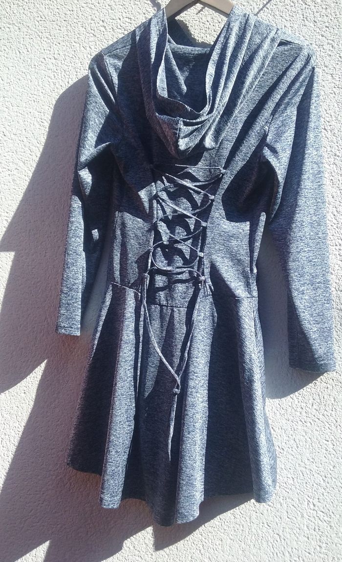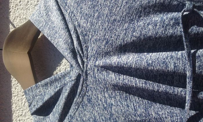 Tunique capuche aux manches longues, le devant est plus court que le derrière, coloris bleu chiné, 100% rayonne, T38/40!