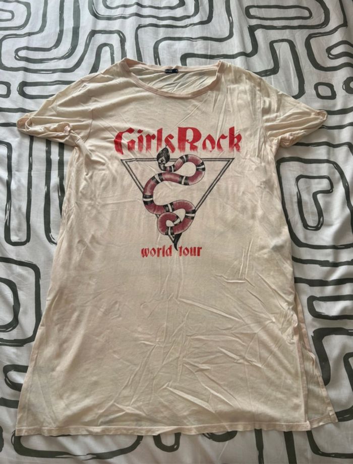 Bonjour ✨ Je vends un t-shirt long oversized en taille M. N’hésitez pas à me contacter pour plus d’informations 😊