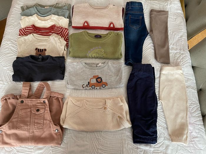 Lot de 15 vêtement bébé garçon 6 mois tout à été acheté neuf en excellent état bcp de choses pas mise neuve Marque principalement vertbaudet , sergent major . Il y a un ensemble h&m, Ça revient à 3,66€ la pièce