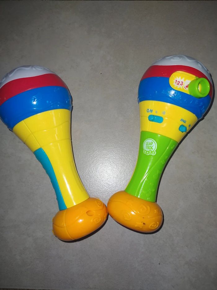 Lot de 2 maracas, 1 on la secoue elle fait du bruit et l'autre musicale, après les couleurs et à compter