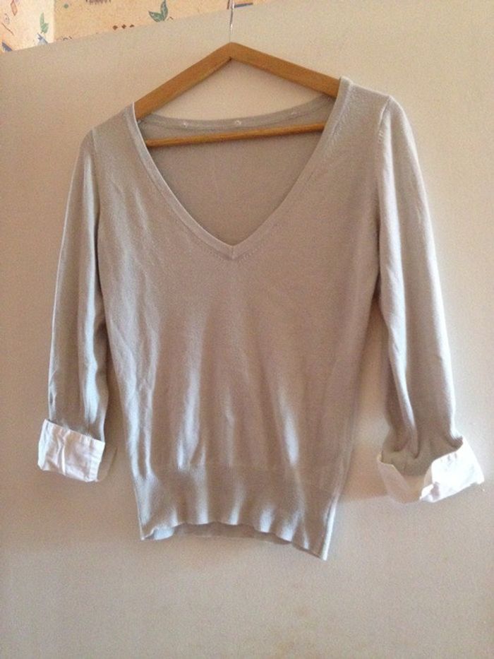 pull chemise col amovible col et bout de manche amovible couleur gris claire taille 34/36
