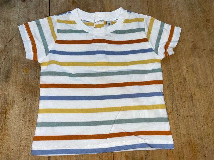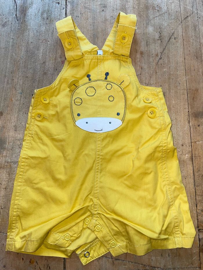 Ensemble salopette + t-shirt Jaune et blanc rayé Taille 6 mois Marque bout’chou Peu porté
