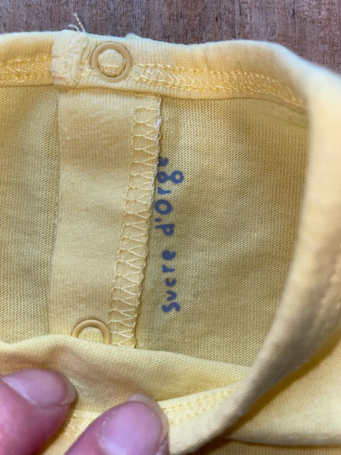 T-shirt manches courtes jaune pâle Taille 9 mois Marque Sucre d’orge Sans étiquettes de taille et instructions de lavage