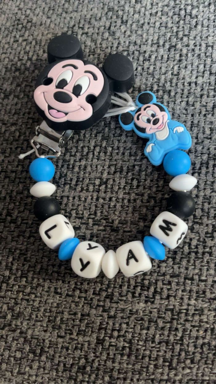 Attache tétine personnalisé en silicone ou en bois au souhait de l’acheteur . Personnalisable au choix de l’acheteur que ce soit la couleur comme le prénom ou le thème . Le fil est doublé pour plus de sécurité tout le long de l’attache tétine. N’hésitez pas à me demander et regarder mon dressing. Une photo vous sera envoyée avant l’expédition pour vous ayez un aperçu du rendu. Tous les produits sont réalisés avec du materiel spécial conçu aux bébés , enfants.