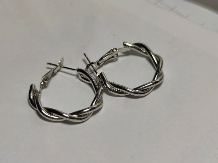 Boucles d'oreilles fantaisie métal argenté anneau tressés