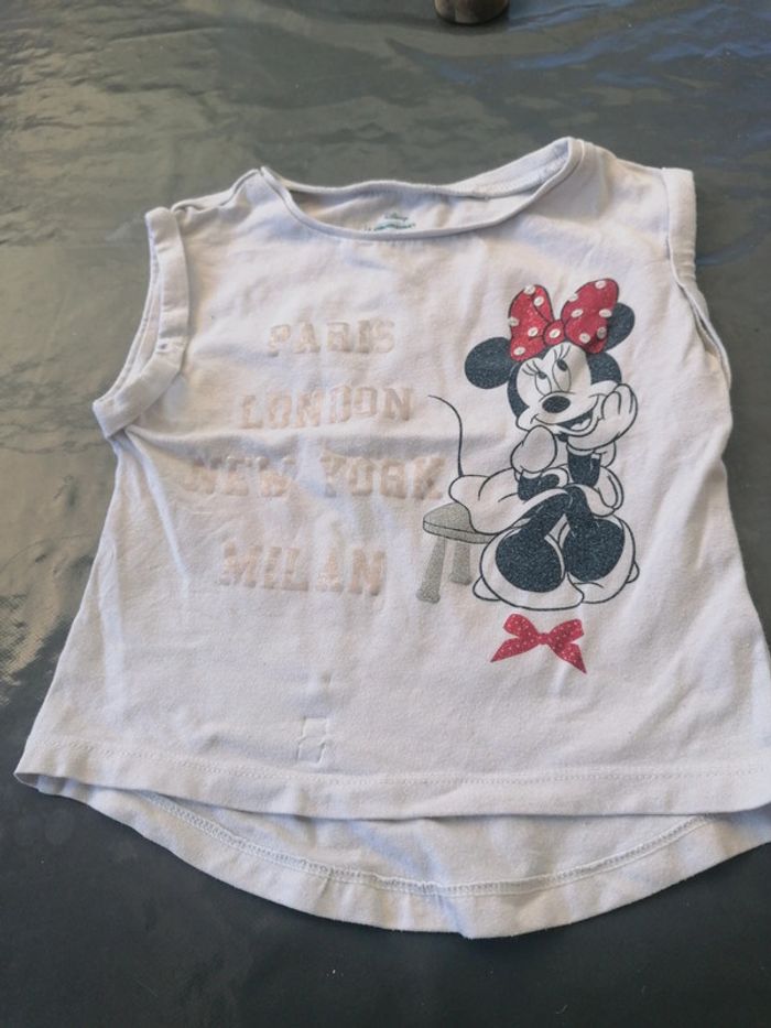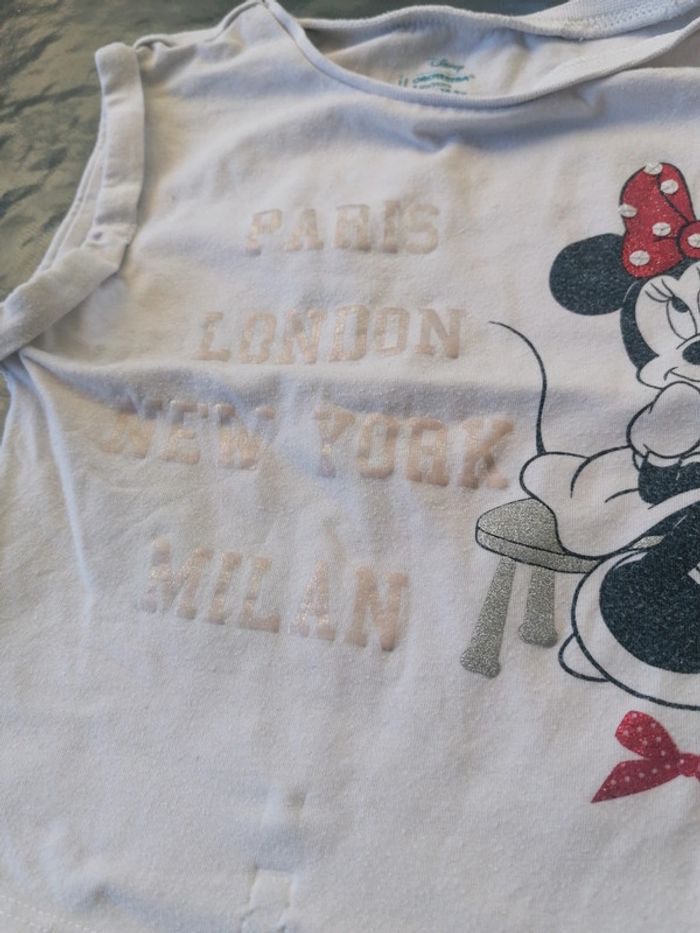 Tee-shirt à manches courtes blanc cassé marque disney taille 3 ans avec inscription et minnie,