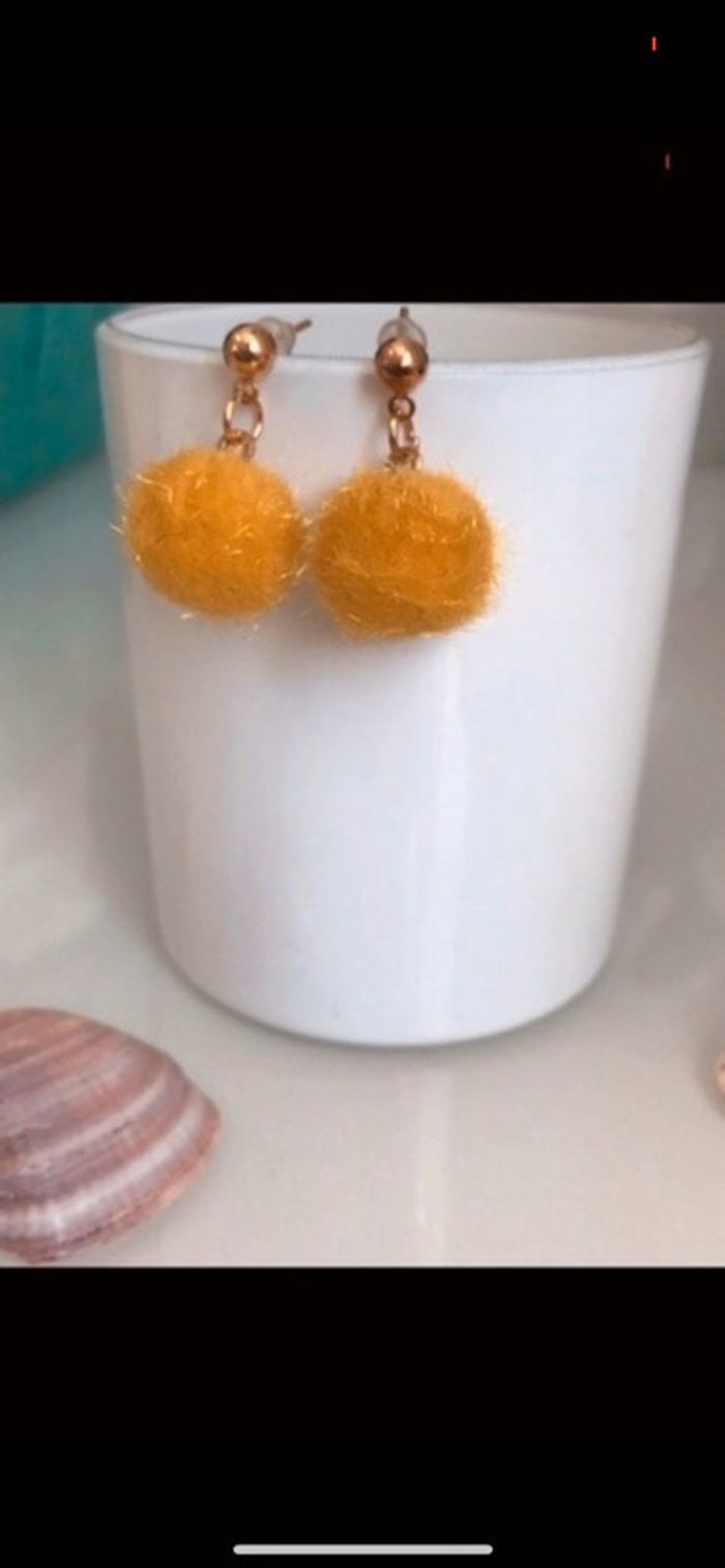 Boucles d oreilles pompon neuves - photo numéro 2