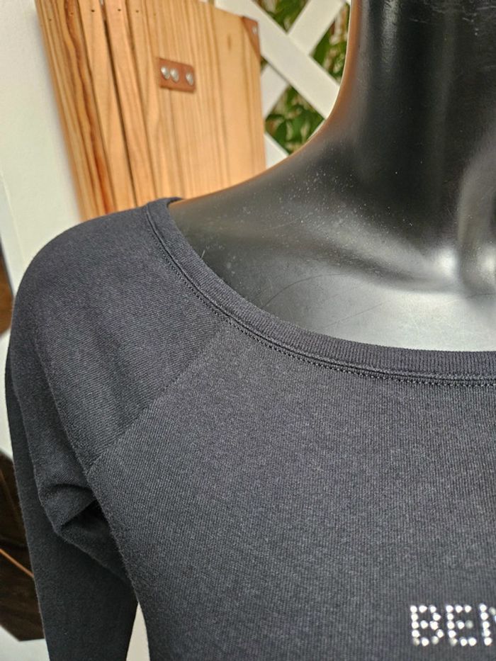 Benetton blouse noir manches 3/4 taille S - photo numéro 3
