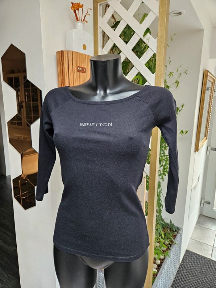 Benetton blouse noir manches 3/4 taille S - photo numéro 1