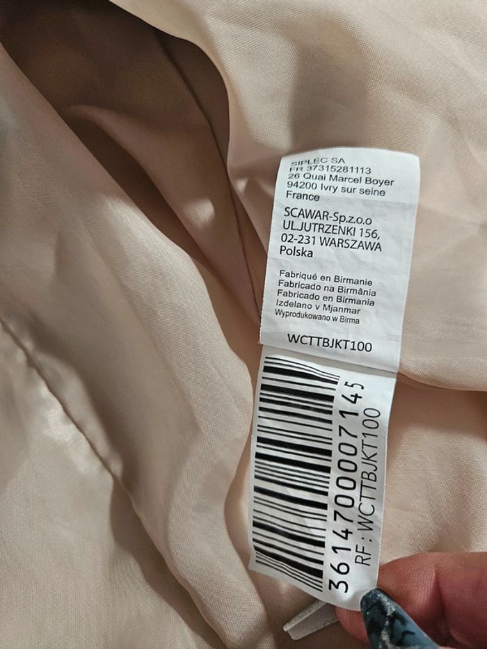 Elle est beige un peu nacré en très bon état Pour mi saison Les dimensions se trouvent sur les photos