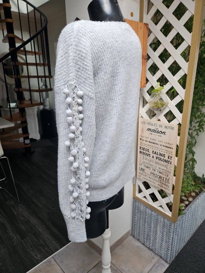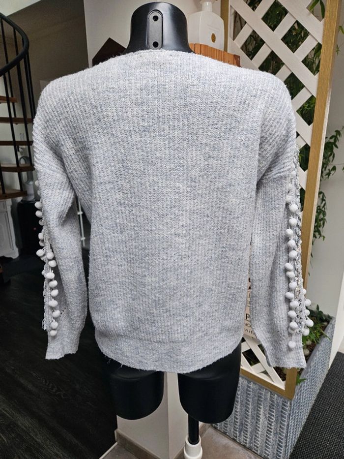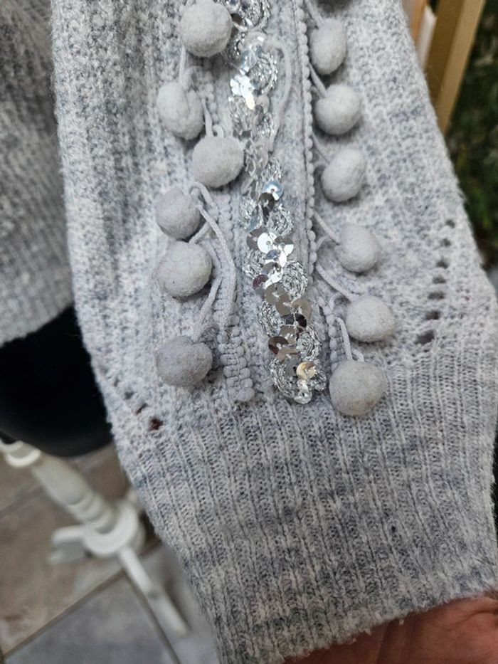 Lili & Lala pull gris chiné à pompons taille M - photo numéro 8