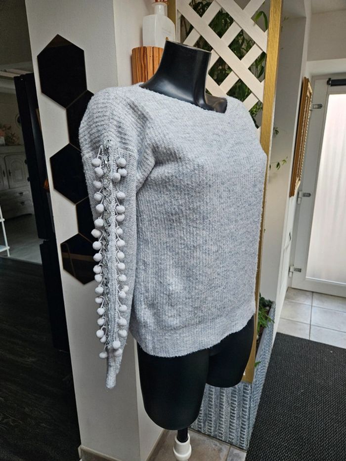 Lili & Lala pull gris chiné à pompons taille M - photo numéro 9