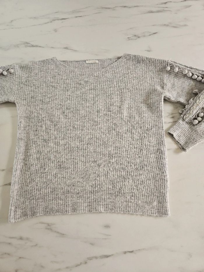 Lili & Lala pull gris chiné à pompons taille M - photo numéro 3