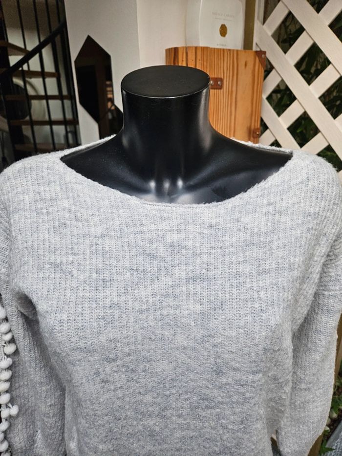 Lili & Lala pull gris chiné à pompons taille M - photo numéro 4