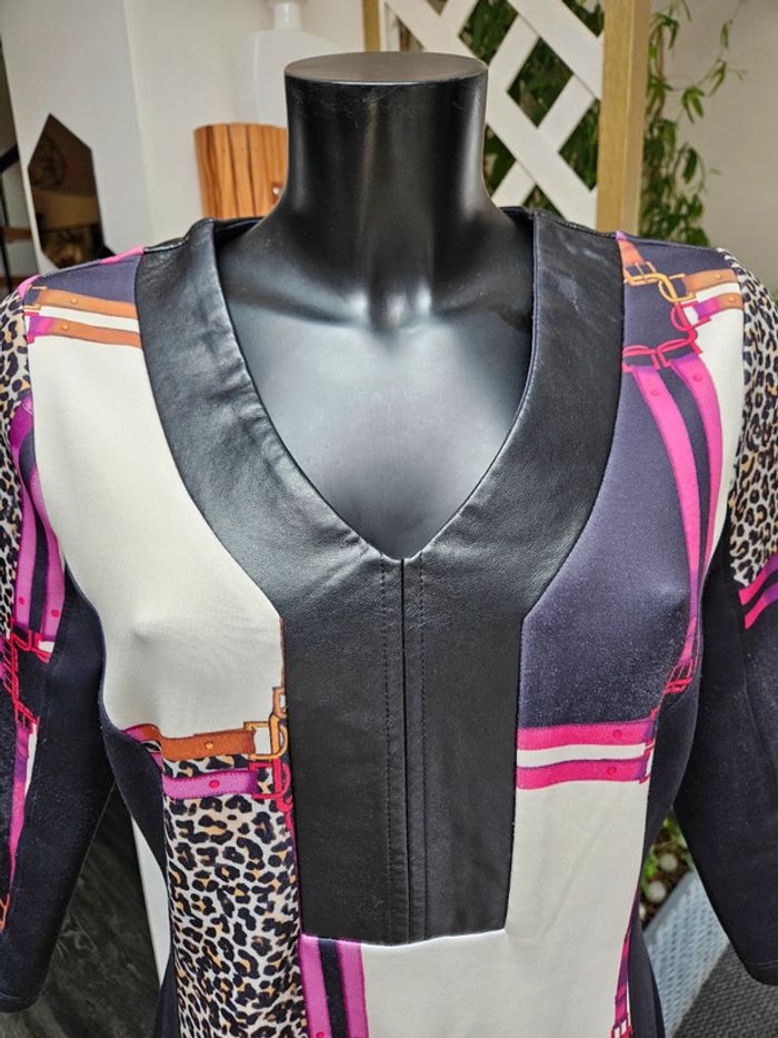 Superbe robe vintage je trouve et assez chic. Portée mais elle reste en bon état. Petite tache sur l'arrière visible sur photo ainsi que les dimensions. Pas légère ni épaisse. Idéal pour mi saison