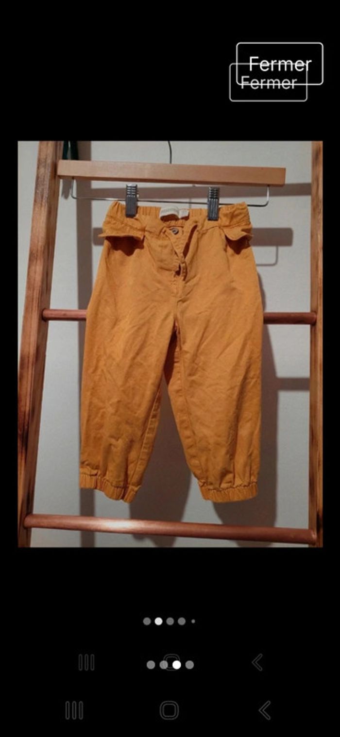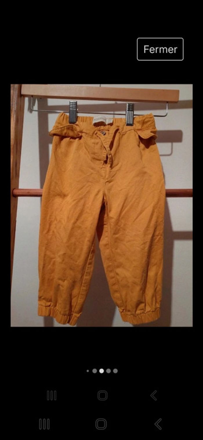 #manouwfille18mois Pantalon bébé fille, taille réglable, resserré sur le bas, 57% viscose et 43% coton. Taille 18 mois. Couleur moutarde. Marque orchestra Très bon état