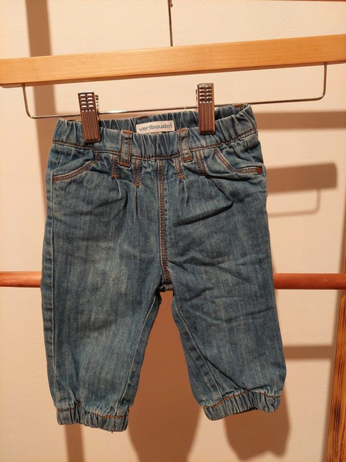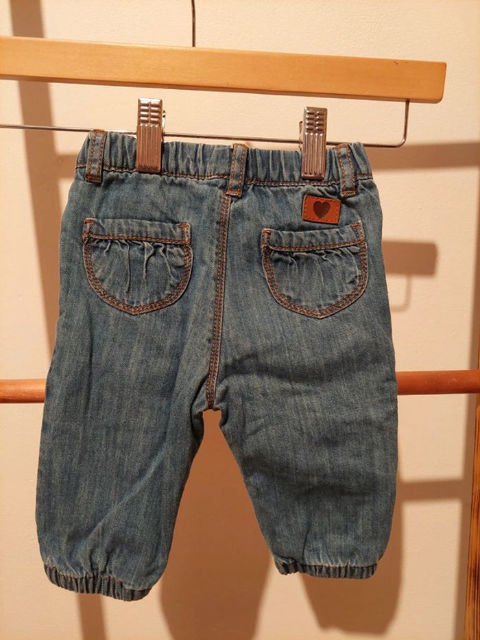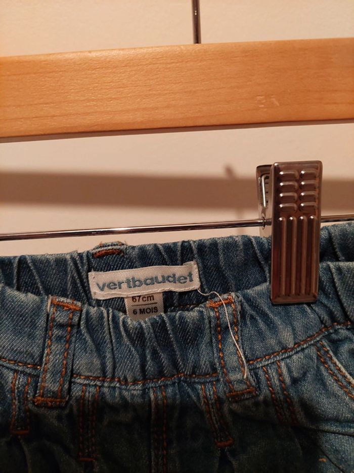 #manouwfille6mois Jeans doublé fille, taille élastique, élastique en bas, 100% coton. Couleur bleue jean. Taille 6 mois. Marque vert baudet Très bon état