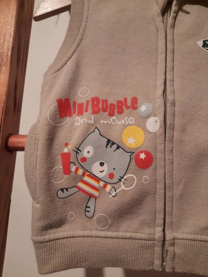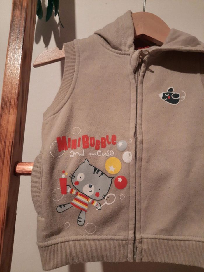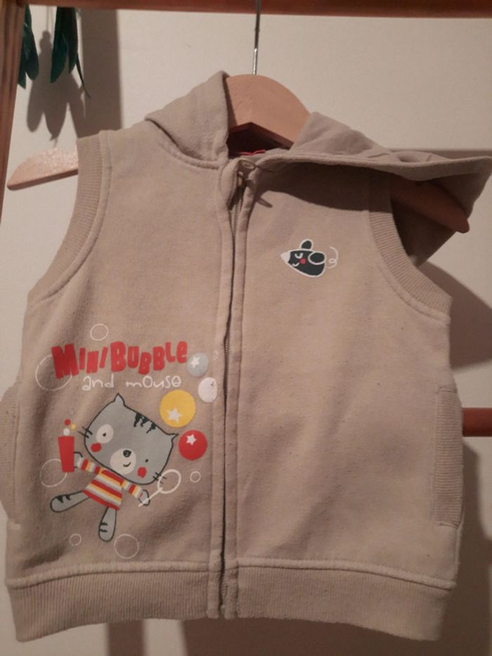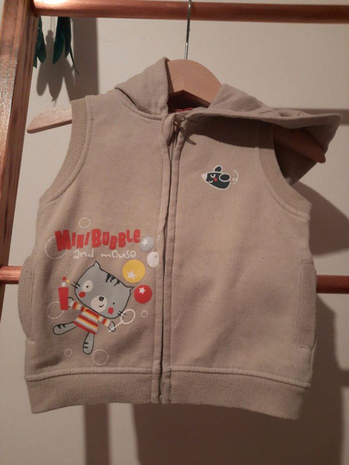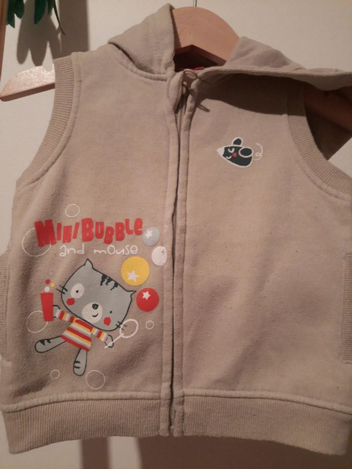 #manouwgarcon6mois Gilet garçon, sans manches, avec capuche. Intérieur polaire. Ferme par zip. 2 p'tites poches. 100% coton. Couleur beige. Marque tissaia. Taille 12 mois. Bon état quelques peluches.