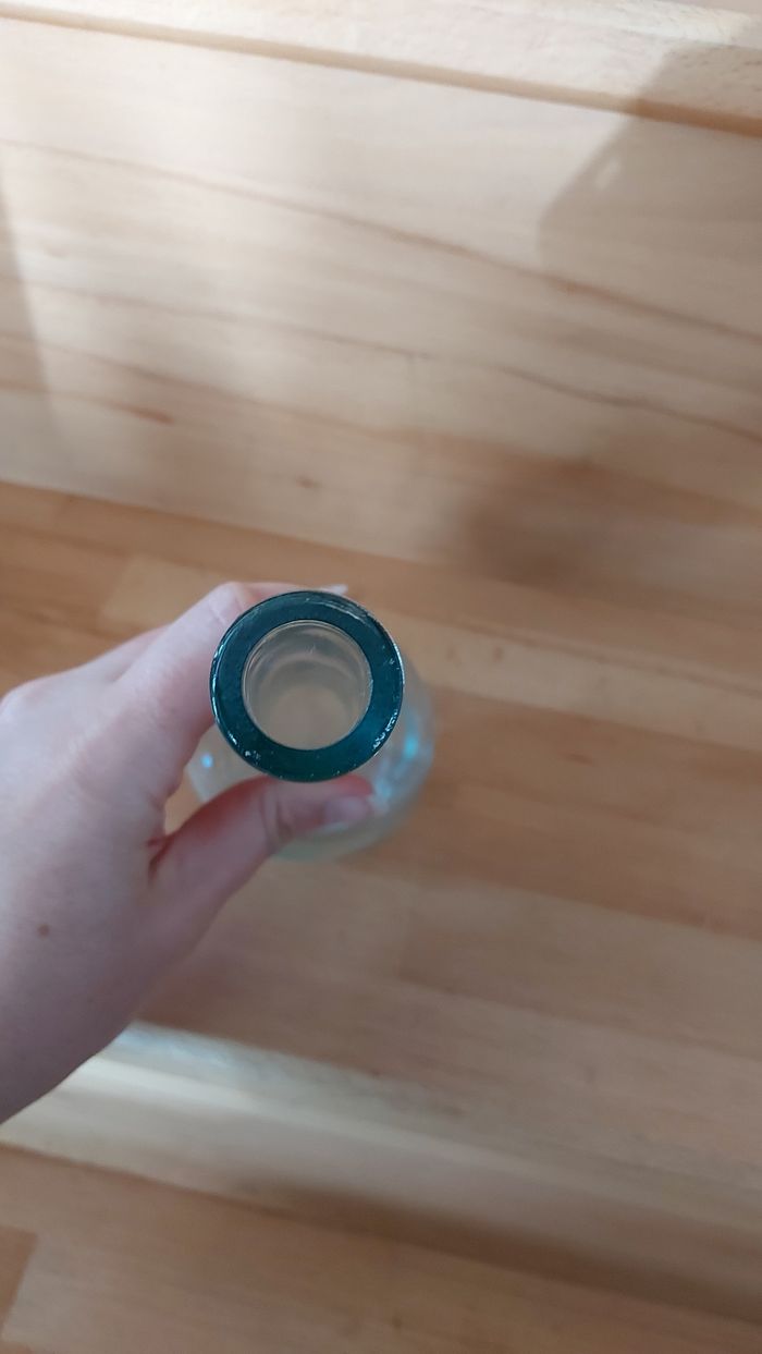 Soliflore en verre, ht 20 x diamètre 8 cm Petites taches dans le verre sur le haut, voir photos