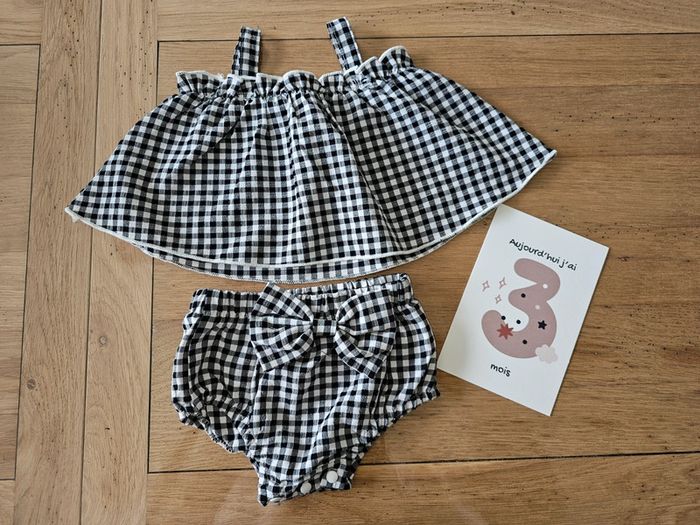 Ensemble débardeur et culotte vichy blanc et noir #chloe23053mois
