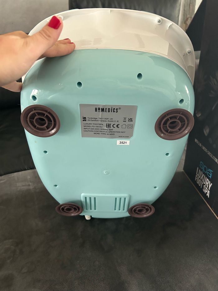 Vends appareil de massage pour les pieds, avec fonction bulles. N’a servi que 2 fois (je n’en ai pas l’utilité), donc comme neuf, vendu avec son carton d’origine. Pour plus de renseignements, contactez moi