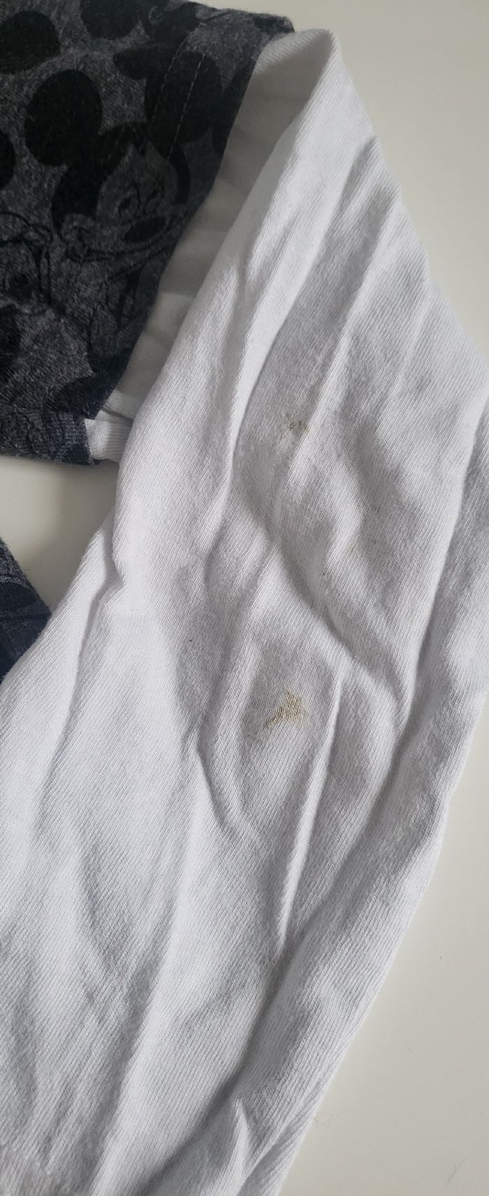 Tâches sur manche gauche pouvant partir au lavage ou à l'aide d'un peu de javel