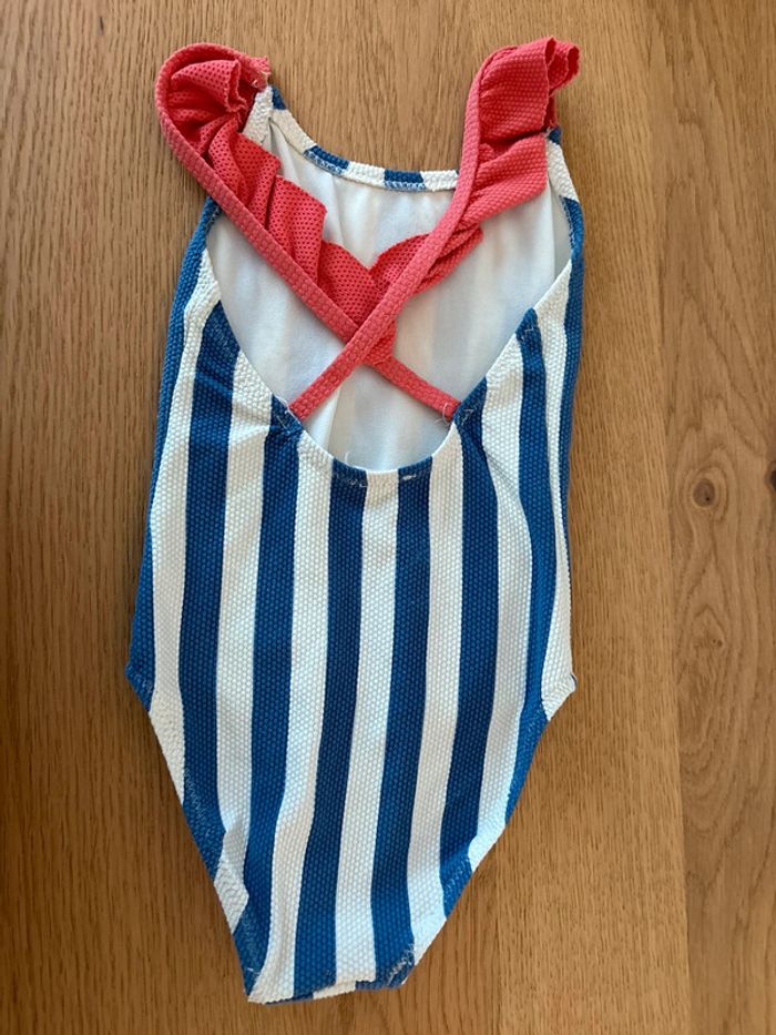 Maillot de bain 1 pièce sans étiquette ( coupée) mais ma fille le portait quand elle mettait du 12-18 mois. Bon état