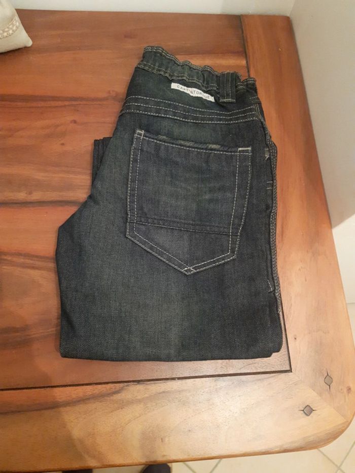 Magnifique jean neuf. Jamais porté, juste l étiquette enlevée après l'achat. Très agréable à porter 100%. Taille élastique.