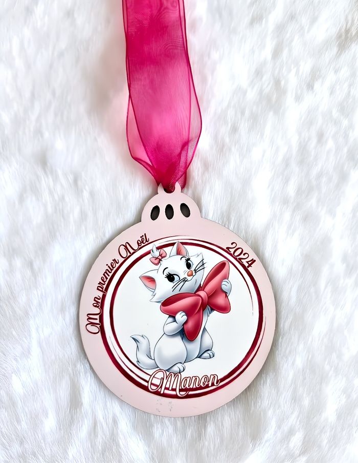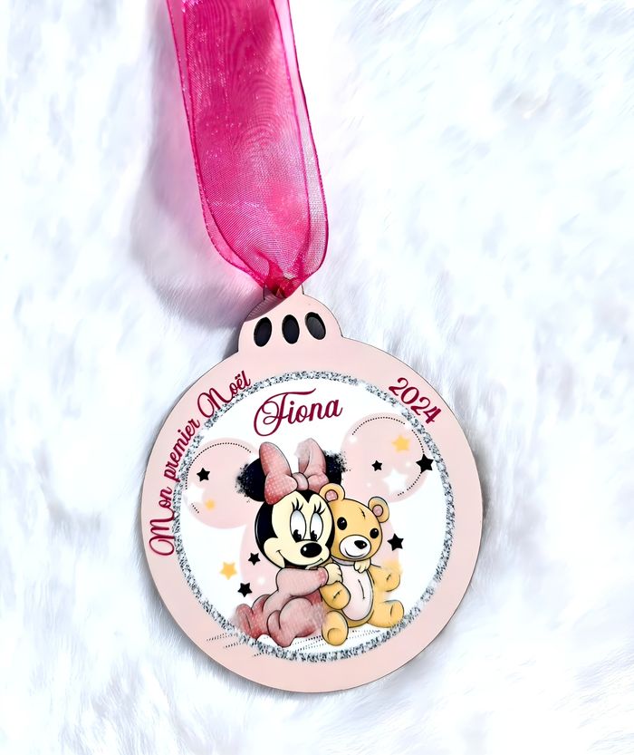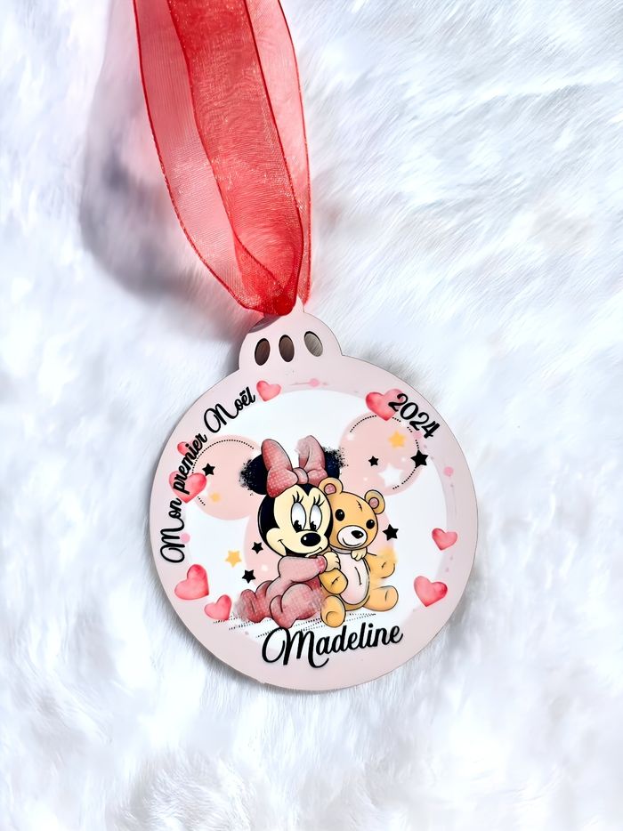 Boule de Noël plate personnalisée Mon premier Noël, où juste " Noël 2024" si ce n'est pas le premier. Personnage de votre choix D'autres modèles dispo Diamètre 7,3cm Envoi rapide