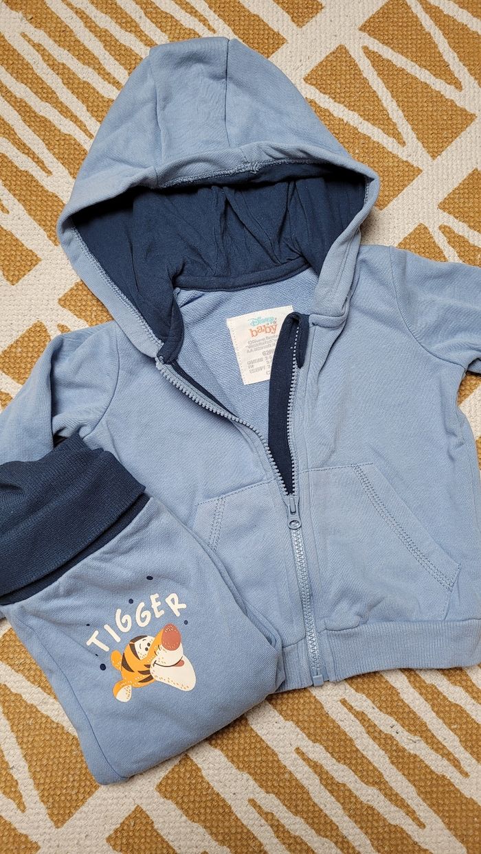 Ensemble survêtement bleu Disney Baby avec Tigrou de Winnie l'ourson. Veste zippée bleue & son pantalon assorti. 2.6mois/62.68cm.