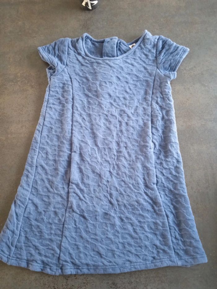 Robe en très bon état z 10 ans bleu pétrole imprimé petite trace en relief épaisse bouton au dos pour faciliter l'enfilage, deux mini poche presque invisible sur le devant