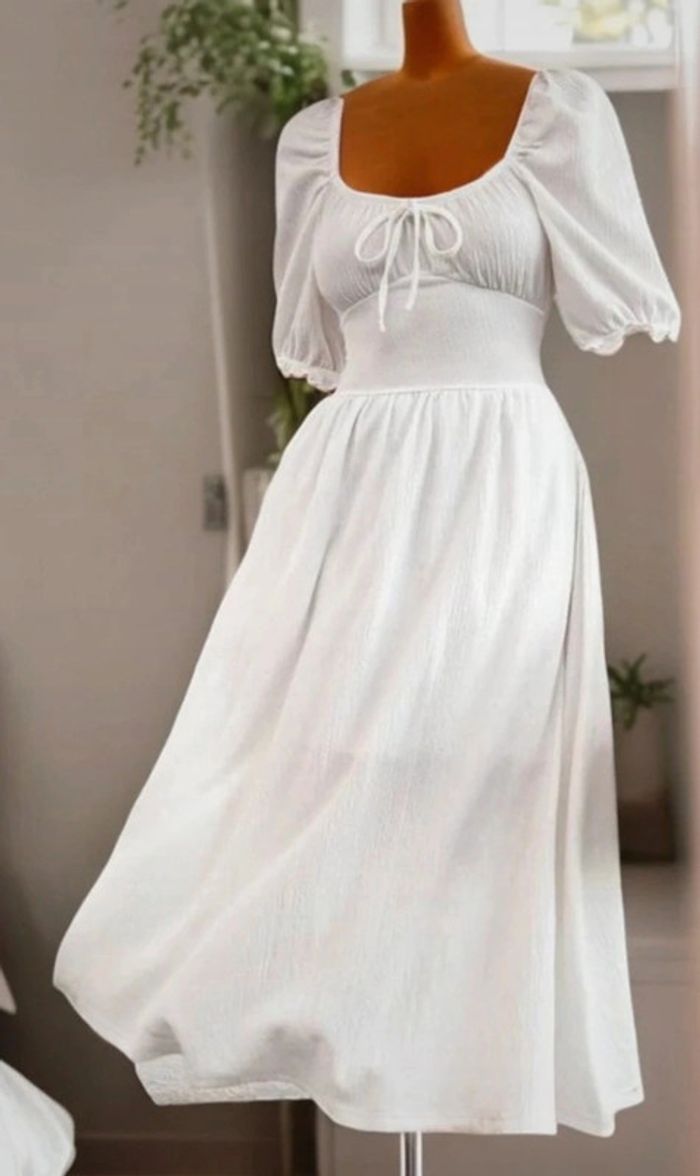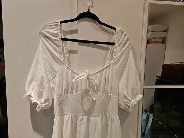 Magnifique robe longue blanche, polyester, doublée jusqu'à hauteur genoux du plus bel effet. #Lili0405robeslongues