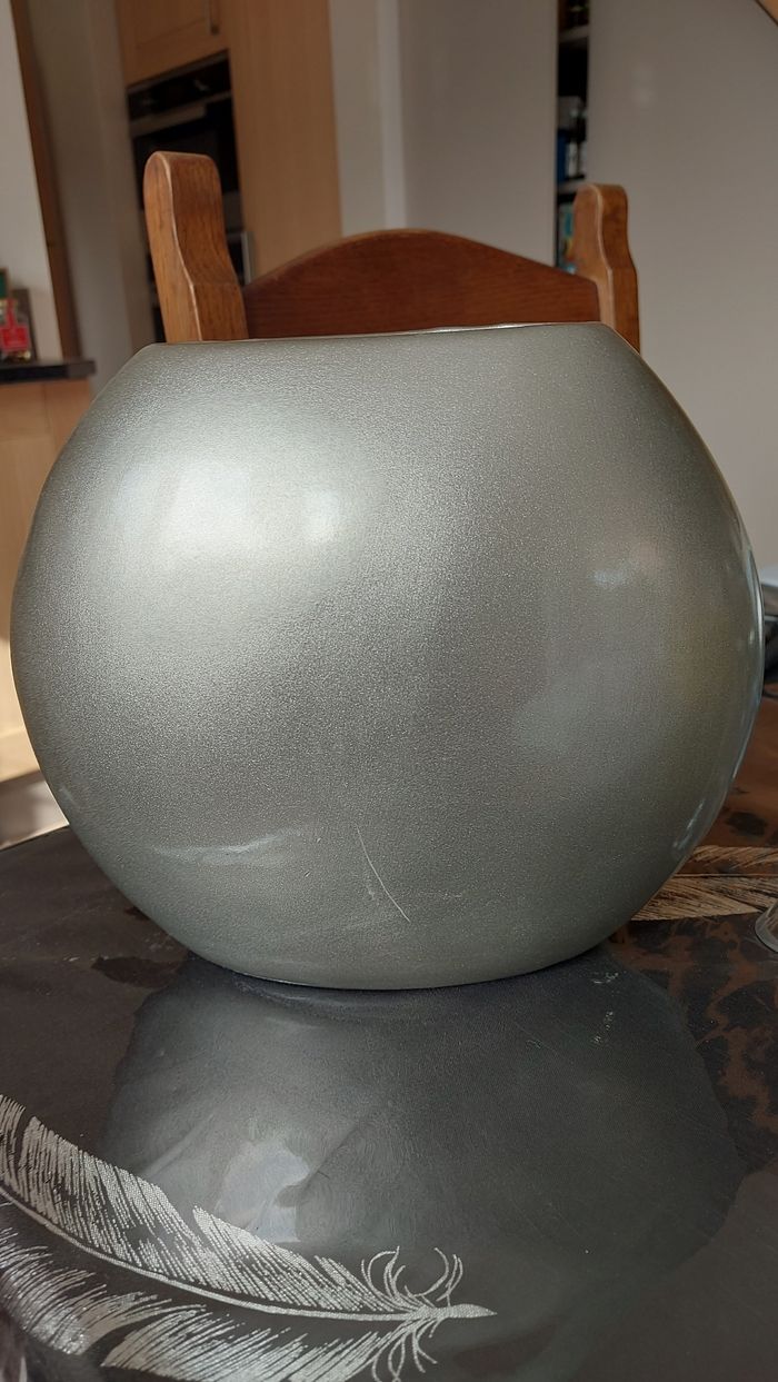 Vase argenté, ht 20 x diamètre 24 cm Une griffe causée par l'entreposage
