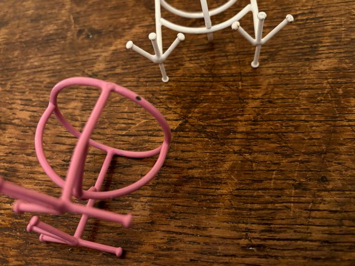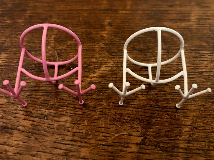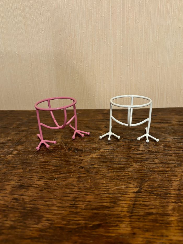 Vend 2 supports pour beauty blender (éponge à maquillage) En métal peint Couleur rose et blanc Dimensions : H 5 cm env Diamètre 5 cm env. Un tout petit manque de peinture sur le rose (peut être d’origine ?) mais rien de méchant. Maison non-fumeur. Vendu le lot : 2€