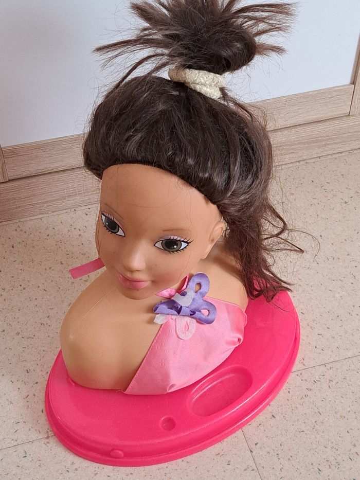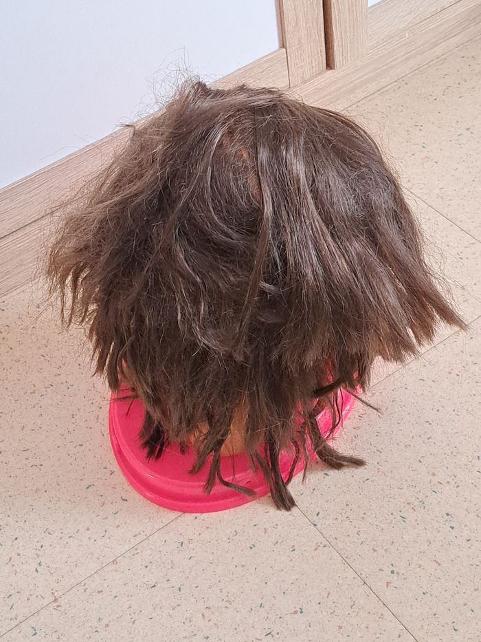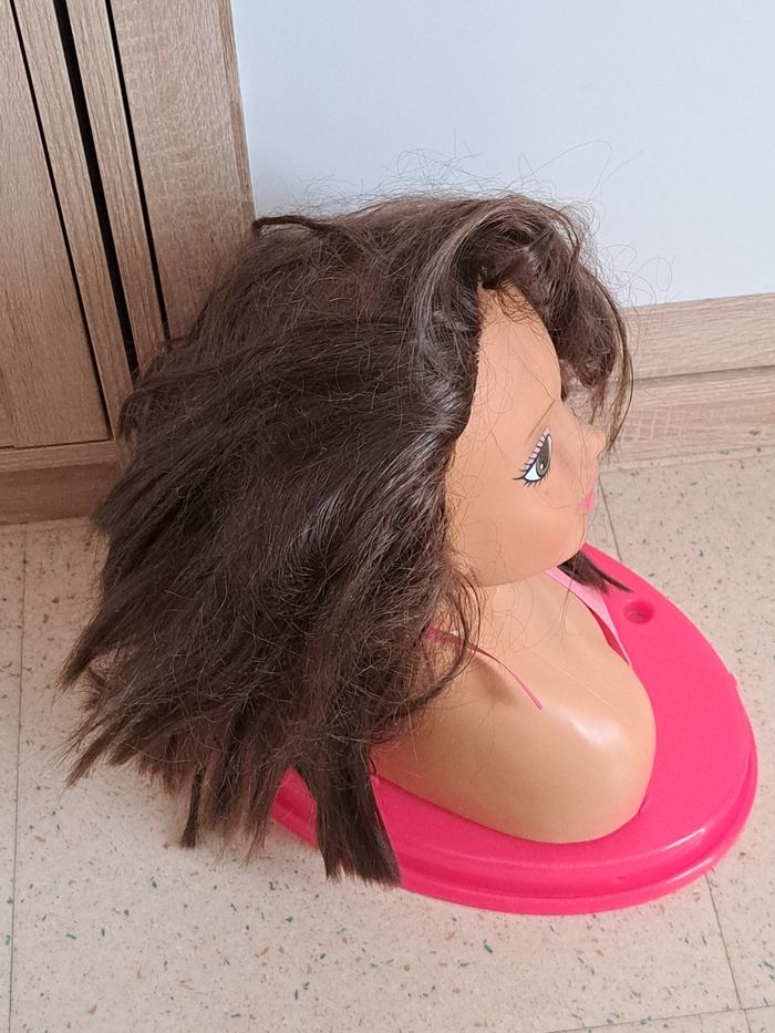 Mannequin Tête à coiffée Cheveux naturels excellent état Dimensions 34 cm
