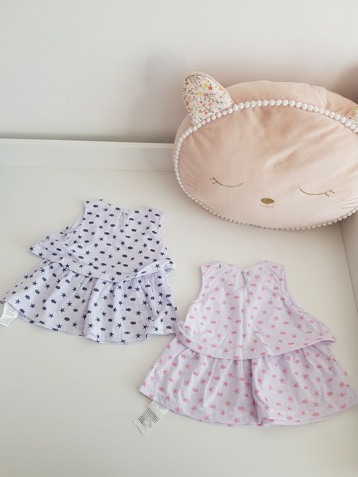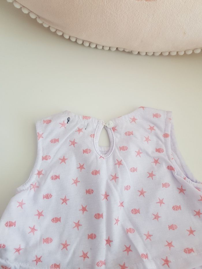 Lot 2 top volanté motif poisson Taille 6 mois 1 blanc et rose 1 blanc et bleu Jamais porté en parfait état