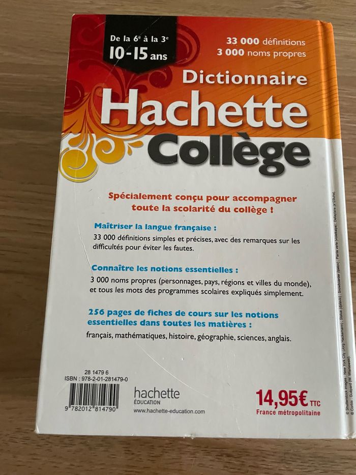 Dictionnaire Hachette collège 10-15 ans Prénom écrit sur le côté du livre sinon très bon état