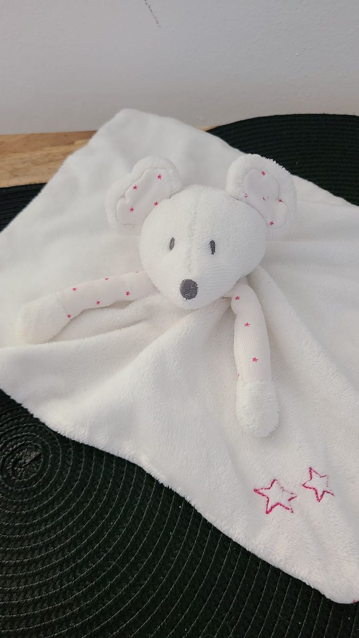 Doudou plat souris blanche étoiles rose OBAIBI - photo numéro 3