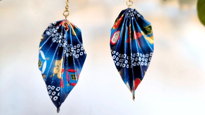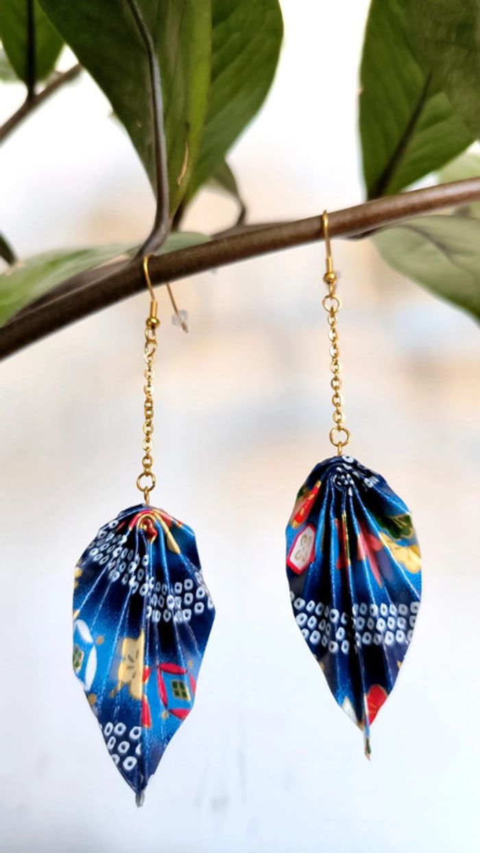 Boucles d'oreille pendantes feuille origami washi japonaises - photo numéro 1